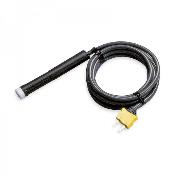 Fluke temperature probes expand the functionality of Fluke thermometers. The 80PK-3A Type K Thermocouple Surface Probe is designed for measuring the temperature of flat or slightly convex surfaces, with an exposed junction to allow direct contact with the surface being measured. The probe can be used with any temperature-measuring instrument that is designed to accept type K thermocouples and has a miniature connector input.