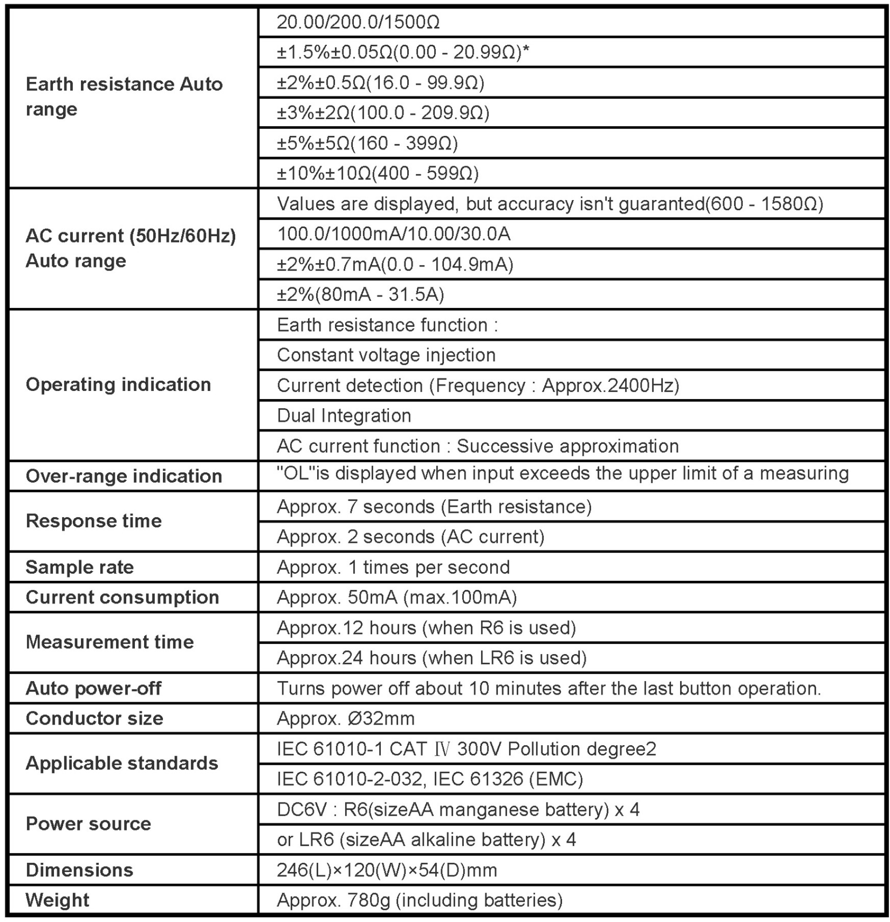 Note: A single earthing can not be measured. (Only for Multiple Earthing System)