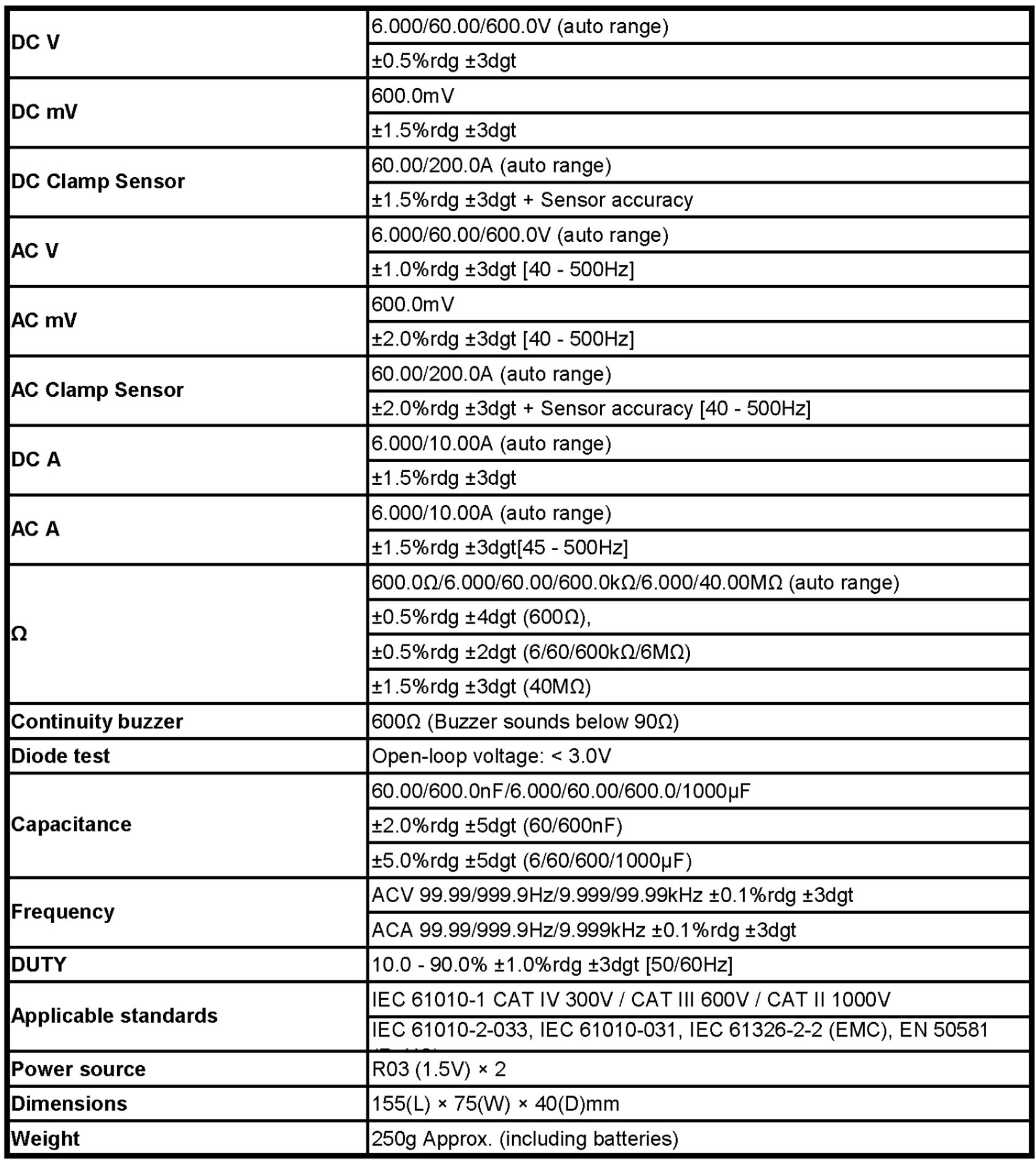 • Safety Standard IEC 61010-1 CAT IV 300V / CAT III 600V